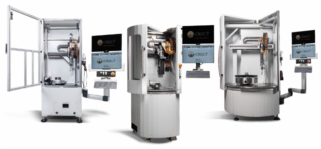 Nous développons et fabriquons des solutions complètes pour diverses industries telles que l’aviation, le transport maritime, les chemins de fer, la fabrication de tuyaux, les roulements, l’industrie nucléaire, les accouplements et bien d’autres encore. Nos domaines de prédilection sont les systèmes automatiques et robotiques pour le contrôle de la qualité. Conception, développement, production, intégration, installation, maintenance et réparation.
